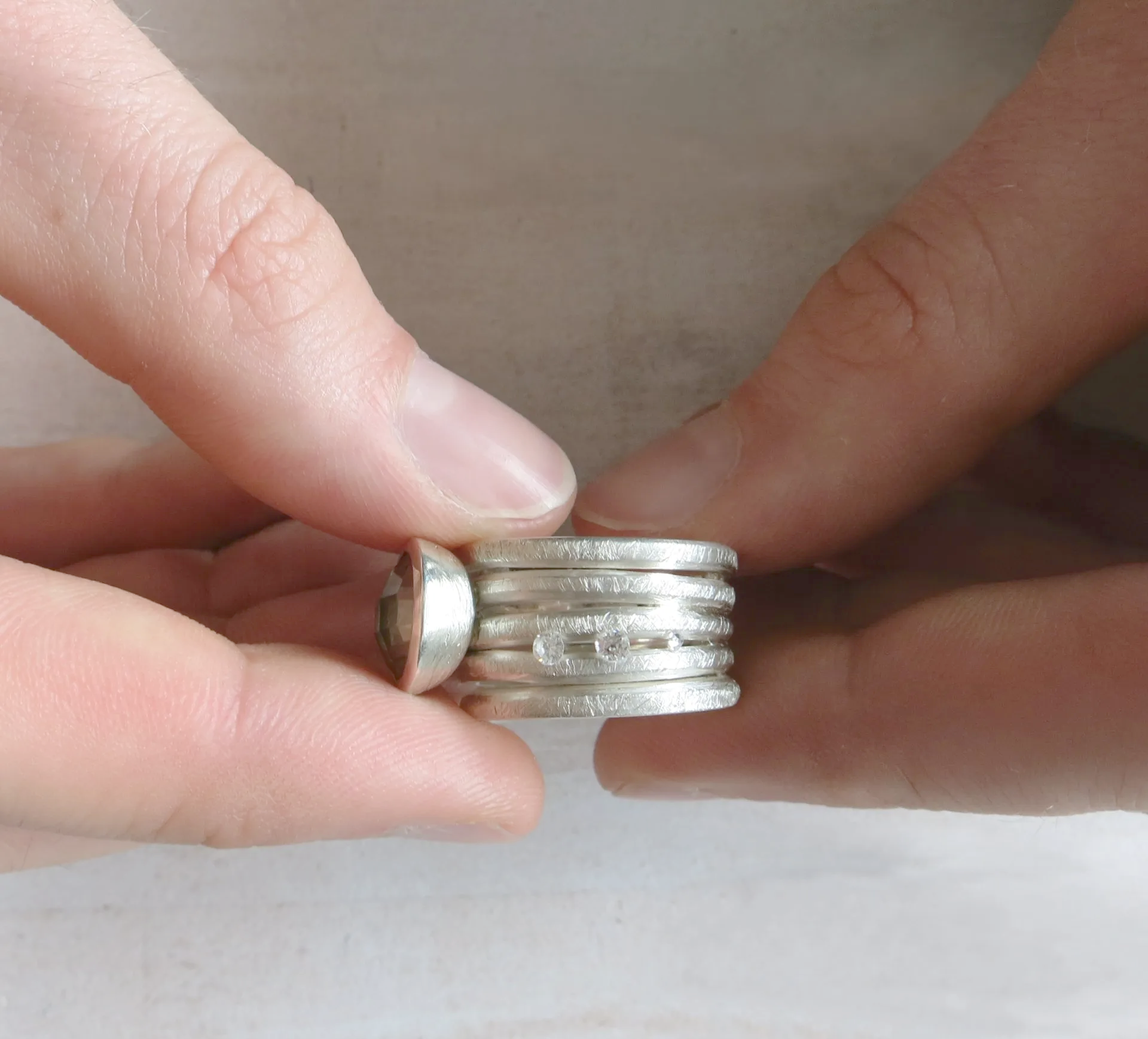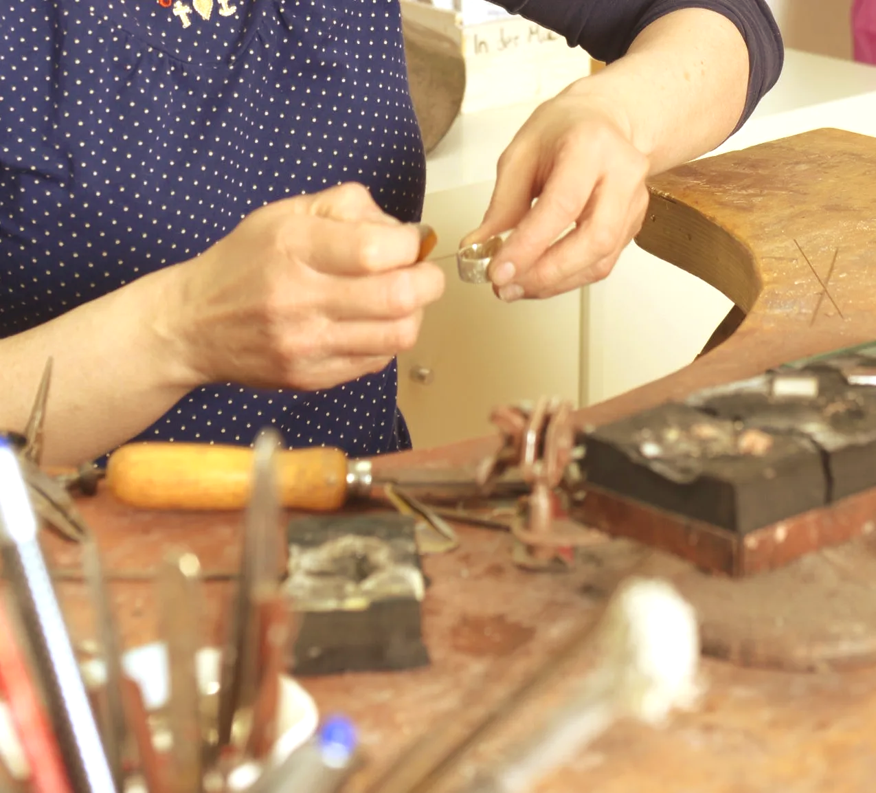 Mein Handwerk habe ich an der Goldschmiedeschule in Pforzheim gelernt. Dort wurde besonders viel Wert auf eigenes, individuelles Design gelegt. Um meinen Horizont und meine Fähigkeiten zu erweitern, arbeitete ich anschließend in verschiedenen Goldschmiedewerkstätten.
